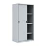 Каркас шкафа изготовлен из металла, что гарантирует его устойчивость к нагрузкам и механическим повреждениям. Внешняя поверхность покрыта полимерным составом светло-серого оттенка (RAL 7035), предотвращающим коррозию, защищающим от царапин и способствующим сохранению эстетичного внешнего вида на протяжении всего срока эксплуатации.