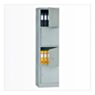 Дверцы оборудованы ригельным механизмом из оцинкованной стали с пластиковыми втулками, что обеспечивает мягкое, тихое открывание и надёжную фиксацию при закрытии. В комплект входят замки с ключевым механизмом, позволяющие безопасно запирать содержимое. Конструкция допускает установку дополнительных полок, причём каждая выдерживает нагрузку до 40 кг. Расстояние между уровнями полок можно настраивать с шагом 25 мм, адаптируя внутреннее пространство под различные форматы хранения. Шкаф поставляется в разобранном виде для удобства транспортировки. По желанию заказчика возможна окраска дверей в альтернативные цвета из стандартной палитры производителя.
