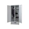 Главное хранилище оснащено двойными створками, одна из которых оборудована запорным механизмом почтового типа, одновременно блокирующим обе дверцы. Внутренний отсек укомплектован шестью съемными решетчатыми панелями, на которых можно размещать одежные элементы, обувные изделия и головные уборы, а также подвешивать вешалки для упрощенной просушки верхней одежды. В верхнем сегменте конструкции предусмотрено технологическое отверстие для отвода нагретого воздуха, а в комплект поставки включен монтажный адаптер для интеграции с системой вентиляции.