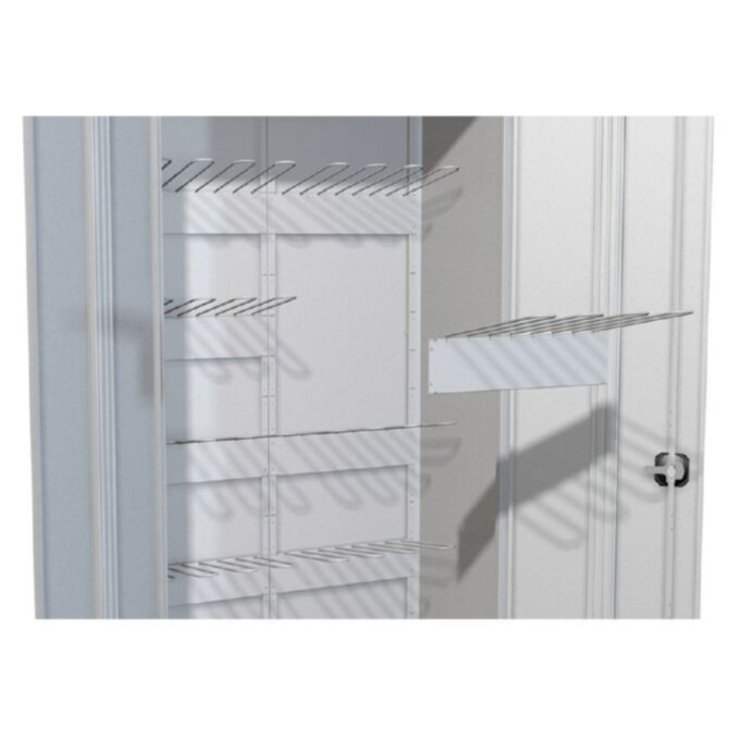 Эта проволочная полка разработана для установки внутрь сушильных шкафов моделей ШС Ветерок 1940 и ШС Циклон 1985. Её крепление осуществляется с помощью кронштейнов, что позволяет быстро и надёжно установить изделие внутри корпуса. Полка обеспечивает удобное размещение как объёмной одежды, так и небольших предметов гардероба — таких как варежки, шапки, перчатки и носки. Простая установка и устойчивое крепление делают её практичным решением для организации внутреннего пространства шкафа. Возможность установки до десяти полок одновременно даёт широкие возможности для гибкой организации внутреннего пространства шкафа в зависимости от типа размещаемых вещей и особенностей эксплуатации.