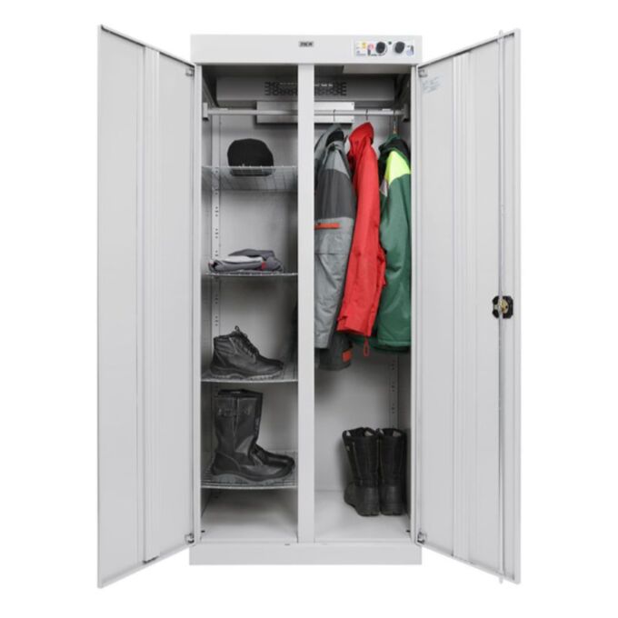 Сушильный шкаф ШС Циклон 1985 предназначен для быстрой и эффективной сушки рабочей и повседневной одежды в условиях повышенной влажности и загрязнения. Он активно применяется на промышленных объектах, буровых платформах, в ремонтных подразделениях, военных и спасательных службах, а также в спортивных учреждениях, образовательных организациях и загородных домах. Модель подходит для эксплуатации в тяжёлых условиях и справляется с задачами, где требуется надёжная и безопасная сушка мокрой экипировки. Шкаф оборудован двумя нагревательными элементами суммарной мощностью 2500 Вт и высокоэффективным вентилятором производительностью 180 м3/ч. Такая конфигурация позволяет просушить даже насквозь промокшие вещи за короткий срок. Простая система управления реализована с помощью двух поворотных регуляторов — для установки температуры и времени сушки. По окончании цикла пользователь ориентируется по визуальному индикатору, расположенному на корпусе. Корпус шкафа обладает высокой прочностью благодаря оригинальной системе сборки, обеспечивающей надёжную фиксацию элементов. Жёсткость конструкции сопоставима с цельносварными моделями и превосходит стандартные разборные решения. Устройство комплектуется четырьмя металлическими полками и перекладиной по ширине, что позволяет размещать объёмные куртки, комбинезоны, перчатки, обувь и мелкие текстильные изделия. Глубина в 600 мм даёт возможность размещать габаритные комплекты одежды без ограничений. Электрооборудование расположено в верхней части корпуса, что исключает попадание влаги и повышает надёжность в эксплуатации. Все элементы управления защищены от прямого контакта с водой. Наличие устройства защитного отключения и выносного подключения повышает уровень безопасности. При необходимости шкаф подключается к системе вытяжной вентиляции через предусмотренный фланец диаметром 125 мм. Днище изготовлено из оцинкованного металла, устойчивого к коррозии и воздействию влаги. Работает шкаф от обычной сети напряжением 220 В при частоте 50 Гц. Максимальная температура в режиме сушки достигает 70 градусов, а уровень шума при работе не превышает 45 дБ. Питание осуществляется через кабель длиной около 4 метров. Цвет корпуса — светло-серый, соответствующий стандарту RAL 7038. Устройство поставляется в разобранном виде, что упрощает транспортировку и размещение. ШС Циклон 1985 — это прочное, надёжное и высокоэффективное оборудование, предназначенное для профессионального использования в сложных климатических и эксплуатационных условиях.