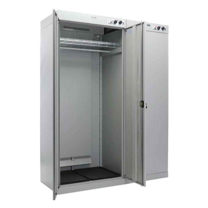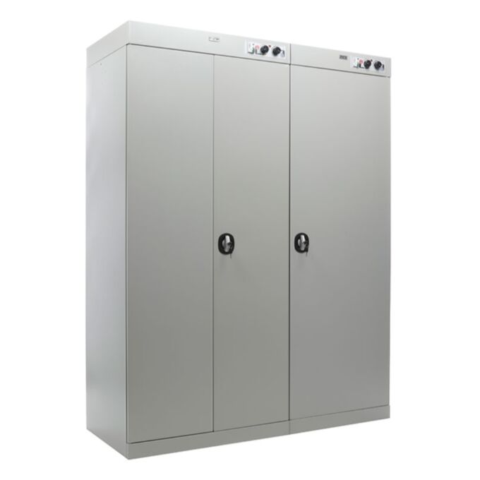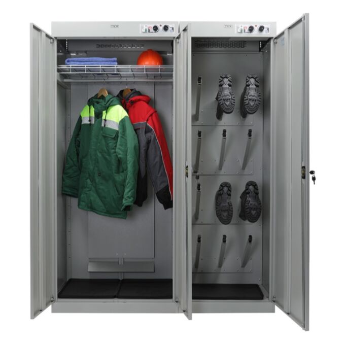 Шкаф сушильный ШС Сахара 5 разработан для комплексной сушки одежды, обуви и снаряжения сотрудников, работающих в тяжёлых климатических и производственных условиях. Он рассчитан на обслуживание группы из пяти человек и активно применяется в военных частях, пожарных депо, на стройплощадках, нефтяных и буровых станциях, а также в спортивных и ледовых объектах. Устройство создавалось как надёжное промышленное решение с высокой производительностью и устойчивостью к внешним нагрузкам. Модель представляет собой двухсекционный шкаф. В одной секции размещается одежда — она оборудована двойной распашной дверью, усиленной перекладиной под вешалки и дополнительной полкой для хранения аксессуаров и защитных элементов экипировки. Вторая секция предназначена для сушки обуви и оснащена системой патрубков, на которые развешивается обувь. Каждый патрубок снабжён автоматическим клапаном, блокирующим подачу воздуха в случае, если обувь не установлена. Это решение позволяет сэкономить энергоресурсы и повысить безопасность при использовании шкафа. Конструкция выдерживает значительные нагрузки: перекладина предназначена для веса до 50 килограммов, полка — до 10 килограммов. Жаростойкие резиновые поддоны, идущие в комплекте, защищают основание от перегрева и загрязнений. Оцинкованные элементы нижней части корпуса, включая дно и порог, эффективно противостоят коррозии даже при эксплуатации во влажной среде. Управление шкафом осуществляется индивидуально для каждой секции. Для настройки предусмотрены два поворотных регулятора: один задаёт необходимую температуру, второй устанавливает продолжительность цикла до 6 часов. Максимальная температура нагрева достигает 70 градусов. Блок электроники размещён в верхней части корпуса, что полностью исключает вероятность контакта с влагой. Для защиты персонала установлено устройство защитного отключения, вынесенное за пределы шкафа. ШС Сахара 5 сертифицирован и соответствует нормам электробезопасности, санитарным требованиям и стандарту происхождения СТ-1. Благодаря регулируемым опорам каждая секция может быть установлена на неровном полу с точной подгонкой по уровню. Надёжный корпус, продуманная вентиляция и высокая мощность делают эту модель идеальной для предприятий и учреждений, где важно обеспечить оперативную сушку вещей без ущерба для ткани, формы и структуры экипировки. ШС Сахара 5 — это промышленный сушильный шкаф нового поколения, сочетающий в себе прочность, надёжность, функциональность и соответствие современным требованиям безопасности и гигиены.