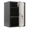 Лицевая панель и боковые стенки выполнены из металла толщиной 1,2 мм, что создаёт базовую защиту от механического воздействия и способствует сохранности содержимого. Встроенное отделение с отдельным ключевым замком позволяет организовать раздельное хранение особо важных бумаг, печатей, носителей информации или других ценностей, требующих повышенного контроля доступа. Основные двери также комплектуются надёжными замками Практик, обеспечивающими простоту и безопасность в использовании.