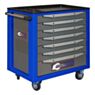 Инструментальная тележка Toolbox TBS-7 сочетает прочность, мобильность и удобство эксплуатации, создавая комфортные условия для работы и обеспечивая надежное хранение инструментов и оборудования.