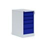Цветовая схема тумбы: корпус и каркасы ящиков — светло-серого оттенка, фронтальные панели выдвижных ящиков выполнены в насыщенном синем цвете. Такое сочетание делает внешний облик тумбы современным и практичным, подходящим для различных типов производственных помещений.