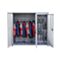 Корпус шкафа выполнен из прочного металла с рамной конструкцией, что гарантирует надёжность и устойчивость. Внутреннее пространство разделено на два независимых сектора: отделение для одежды и отделение для обуви.