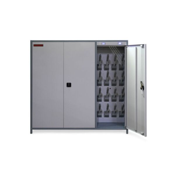 Металлический сушильный шкаф предназначен для быстрого и эффективного удаления влаги с одежды, обуви и экипировки. Каркас выполнен из прочного металла, что гарантирует устойчивость конструкции и длительный срок службы. Внутреннее пространство шкафа разделено на два автономных отсека: первый предназначен для сушки одежды, второй — для обуви. Оба отделения закрываются дверцами с ригельными замками, что обеспечивает сохранность вещей.