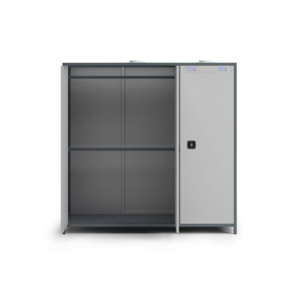 Шкаф оборудован системой защиты от перегрева, использующей термоплавкие предохранители. В крышке каждого отделения имеются вентиляционные отверстия для отвода нагретого воздуха, а также предусмотрена возможность подключения к внешней вентиляционной системе с помощью фланцев, идущих в комплекте.