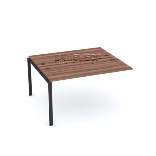 Рабочие поверхности немного приподняты над каркасом — зазор 10 мм добавляет визуальную лёгкость и облегчает восприятие пространства. Между двумя столешницами предусмотрено расстояние 36 мм — оно предназначено для установки фронтальных экранов, разделяющих рабочие зоны.