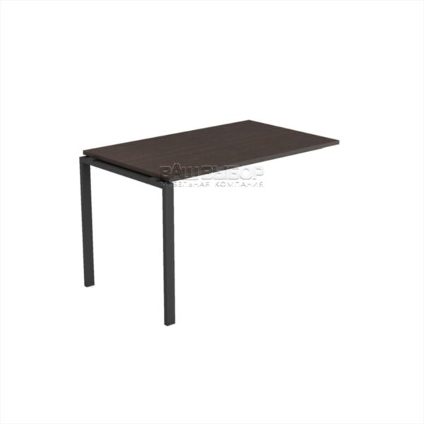 Столешница выполнена из ламинированной ЛДСП толщиной 22 мм с кромкой из АВС 2 мм, устойчивой к ударам и истиранию. Основание — прочный металлический каркас антрацитового цвета с П-образными опорами (50×25 мм) и усилением траверсами (40×20 мм). Рабочая поверхность приподнята на 10 мм, что придаёт конструкции лёгкость.
