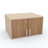 Особенностью данной модели является внутренняя навеска дверей, которая помогает организовать хранение и придать антресоли аккуратный внешний вид. Это решение позволяет эффективно использовать пространство антресоли и сохранять порядок в офисе.