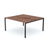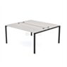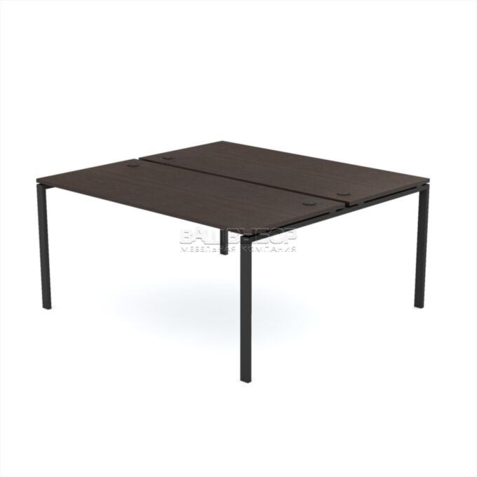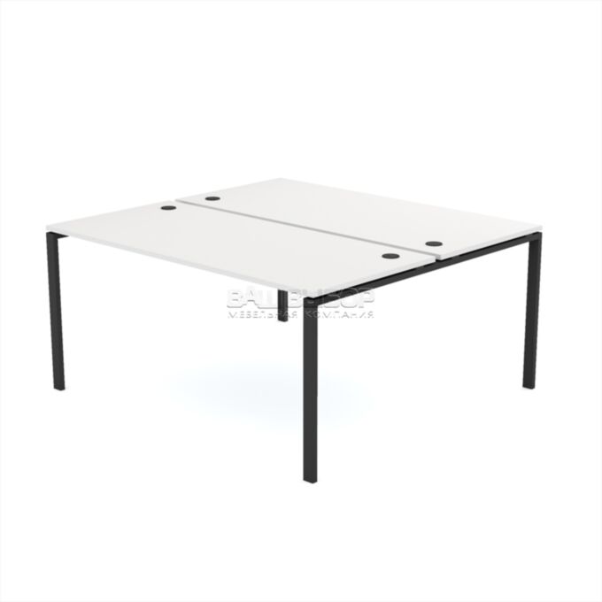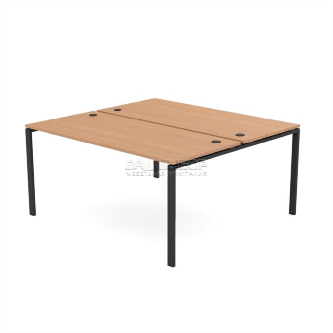 Двухместный бенч-стол АМБ-004 — это надёжная модель на металлическом каркасе из серии «Арго-М», разработанная для рациональной организации рабочих мест в офисе. Конструкция опирается на П-образные опоры с профилем 50×25 мм и усиливается траверсами сечением 40×20 мм, обеспечивая стабильность и прочность. Рабочие поверхности немного приподняты над металлокаркасом, создавая ощущение лёгкости и визуального простора. Габариты стола составляют 1600 мм в ширину, 1496 мм в глубину и 760 мм в высоту. Между столешницами предусмотрен зазор 36 мм, специально рассчитанный для установки фронтальных экранов. Конструкция совместима с тумбами АТ-07 с крышками, а также с моделями тумб-купе, что позволяет гибко формировать индивидуальное рабочее место.
