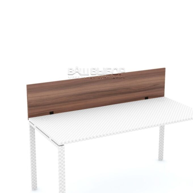 Габариты модели составляют 1600 мм в ширину, 350 мм в высоту и 18 мм в толщину — оптимальные параметры для эффективного зонирования без перегрузки интерьера. Вес изделия — 7 кг, что обеспечивает надёжность при установке. Экран комплектуется креплениями, окрашенными в тон каркаса стола, что позволяет сохранить единство стиля и гармонию в оформлении офиса.