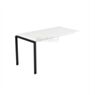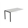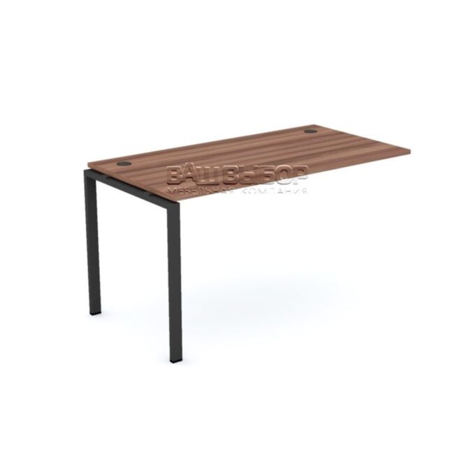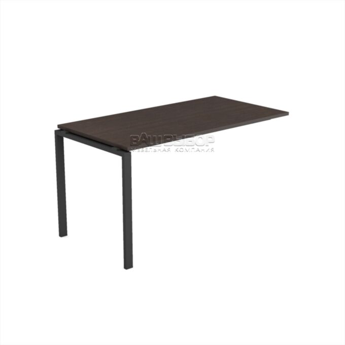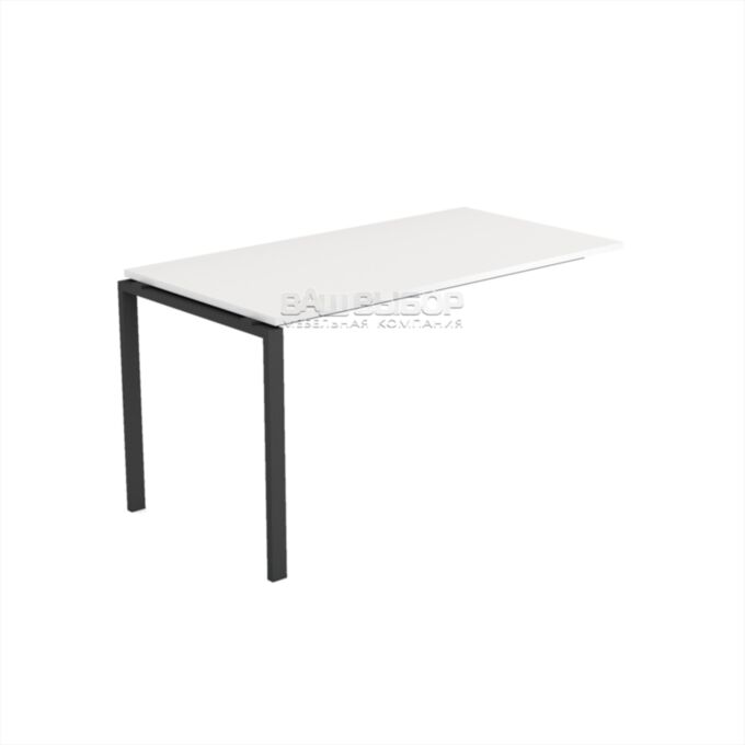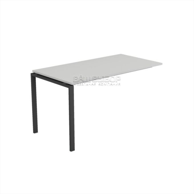 Каркас изготовлен из металла с П-образными опорами сечением 50×25 мм и усилен траверсами 40×20 мм, что обеспечивает прочность и устойчивость. Рабочая поверхность приподнята на 10 мм над уровнем каркаса, создавая эффект лёгкости. Цвет основания — антрацит, универсален для современных офисных интерьеров.