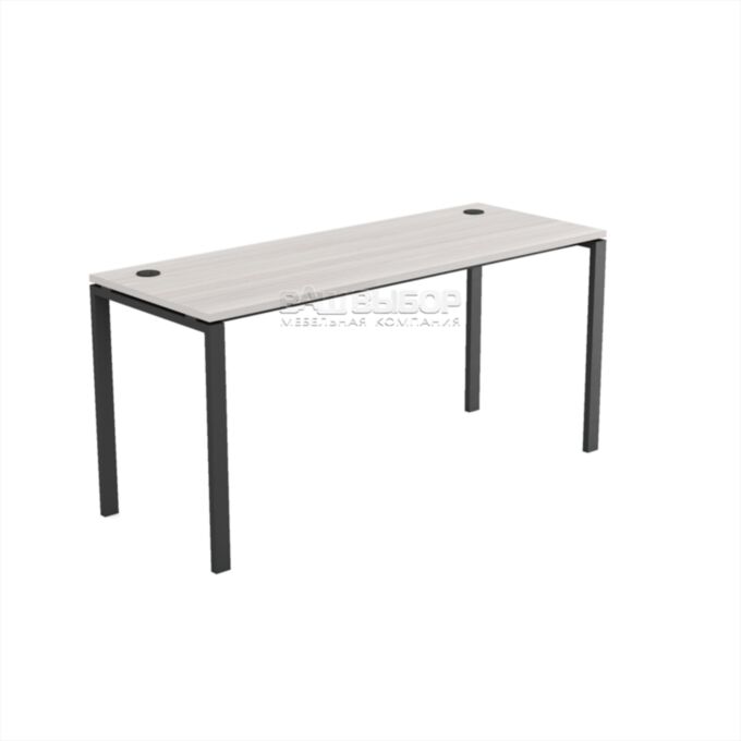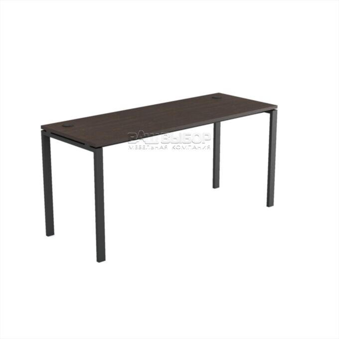Конструкция стола выполнена на прочном металлокаркасе П-образной формы, изготовленном из надёжного профиля сечением 50×25 мм, обеспечивающего устойчивость и жёсткость всей конструкции. В качестве поперечных элементов используются траверсы сечением 40×20 мм, которые повышают прочность каркаса и обеспечивают его долговечность даже при длительной эксплуатации. Особенностью модели является столешница, приподнятая на 10 мм над каркасом, что придаёт столу лёгкость и подчёркивает современную эстетику.