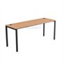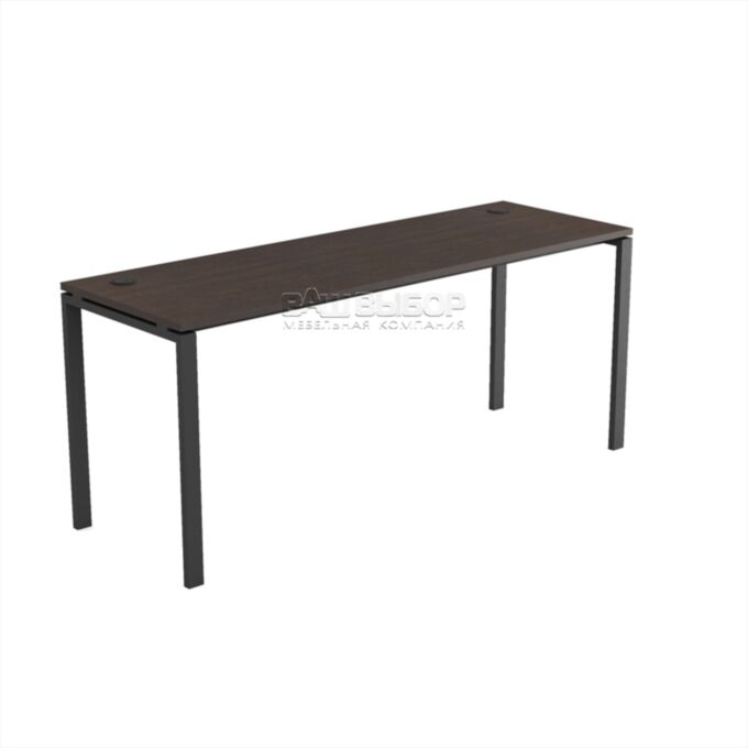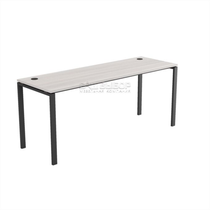 Конструкция базируется на надёжном П-образном металлокаркасе, выполненном из прочного стального профиля сечением 50×25 мм, что придаёт всей модели необходимую устойчивость. Дополнительную жёсткость конструкции обеспечивают траверсы размером 40×20 мм, равномерно распределяющие нагрузку и увеличивающие срок службы изделия. Столешница приподнята на 10 мм над металлическим основанием, что создаёт эффект визуальной лёгкости и подчёркивает современный минималистичный стиль.