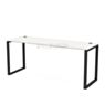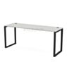 Столешница приподнята на 10 мм над металлокаркасом, что визуально облегчает конструкцию и придаёт современный облик. Модель доступна в двух цветах каркаса — антрацит и белый, что позволяет адаптировать стол под различные интерьерные решения.