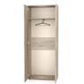 Верхняя панель шкафа выполнена из ЛДСП толщиной 22 мм, что придаёт конструкции прочность и долговечность. Каркас и полки изготовлены из ЛДСП толщиной 16 мм, обеспечивая надёжную поддержку для одежды и аксессуаров. Все материалы производятся компанией Томлесдрев и соответствуют классу эмиссии Е1, что подтверждает их экологическую безопасность.