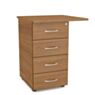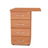 Регулируемые по высоте опоры позволяют легко адаптировать тумбу к различным поверхностям, обеспечивая её устойчивость. Использование металлической фурнитуры и направляющих улучшает функциональность и долговечность изделия. Дополнительным преимуществом является наличие замка на верхнем ящике, что обеспечивает сохранность важных документов и ценных вещей.