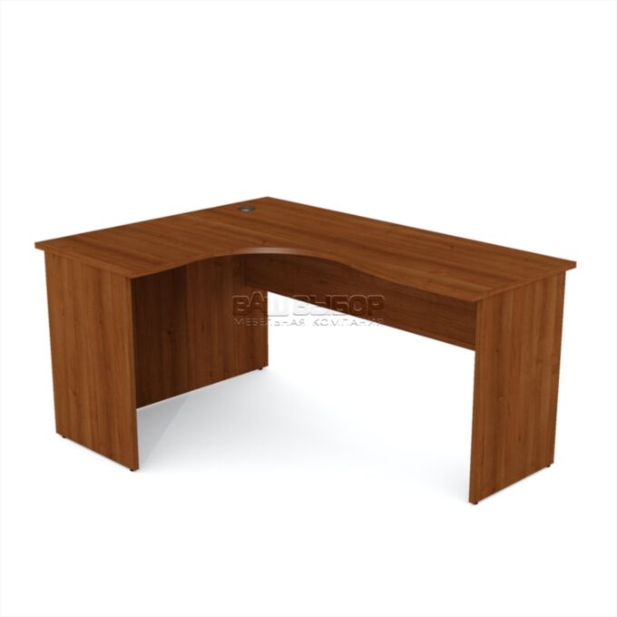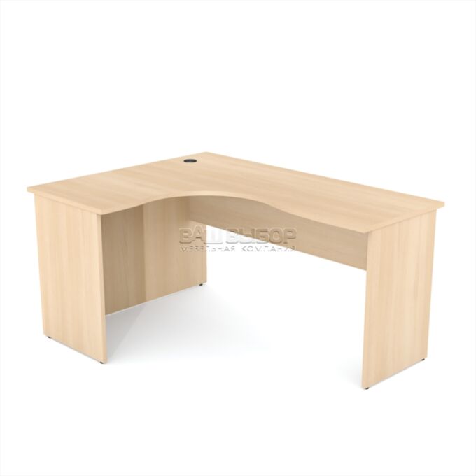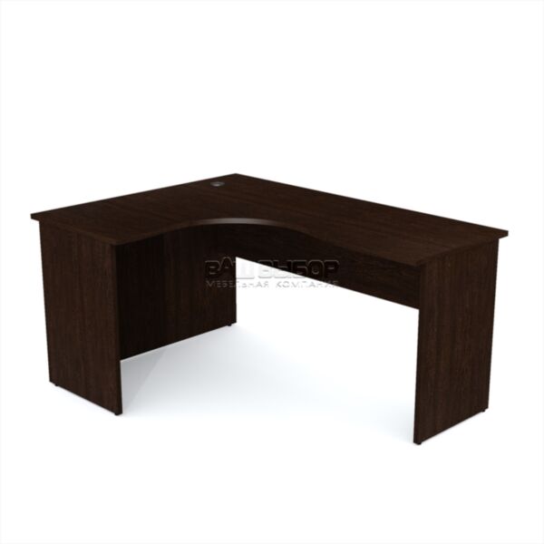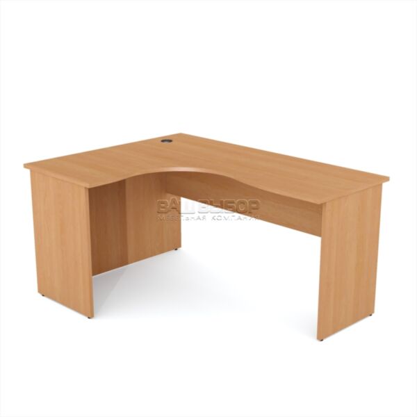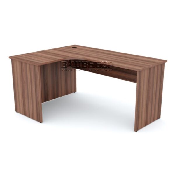 Размер стола — 1600×1200×760 мм — позволяет удобно организовать пространство для работы с документацией, техникой и повседневными офисными принадлежностями. Столешница и опорная часть изготовлены из ламинированной ДСП толщиной 22 мм, что обеспечивает прочность конструкции и устойчивость к износу даже при интенсивной эксплуатации.