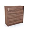 Конструкция отличается надёжным исполнением: корпус и верхняя плита выполнены из прочного ЛДСП толщиной 22 мм, а фасады — из 18-миллиметровой ЛДСП, что придаёт изделию устойчивость к ежедневным нагрузкам и обеспечивает сохранность внешнего вида на протяжении многих лет. Все материалы сертифицированы по классу эмиссии Е1, что делает тумбу безопасной для постоянного использования в офисной среде.