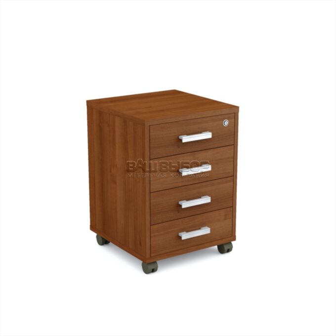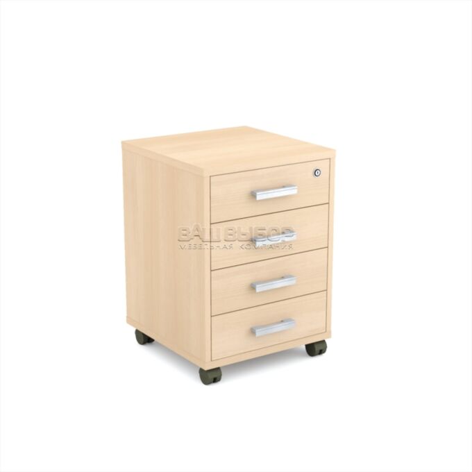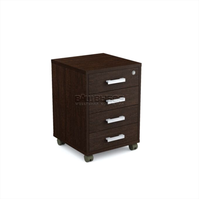 Подвижность конструкции обеспечивается четырьмя колёсными опорами, позволяющими свободно перемещать тумбу по помещению при необходимости. Верхний выдвижной ящик снабжён замком, что позволяет безопасно хранить личные документы, ценные бумаги и конфиденциальные материалы.