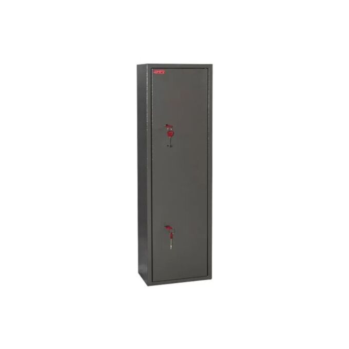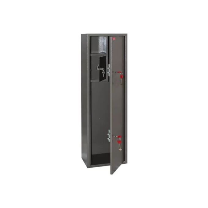 Оружейный шкаф Д-5 — это надежная цельнометаллическая конструкция, предназначенная для безопасного хранения гладкоствольного и ручного оружия, а также боеприпасов и других предметов, требующих контроля доступа. Корпус выполнен из стального листа толщиной 1,2 мм, что обеспечивает прочность и устойчивость к механическим воздействиям. Дверное полотно имеет аналогичную толщину, что повышает уровень защиты содержимого.
