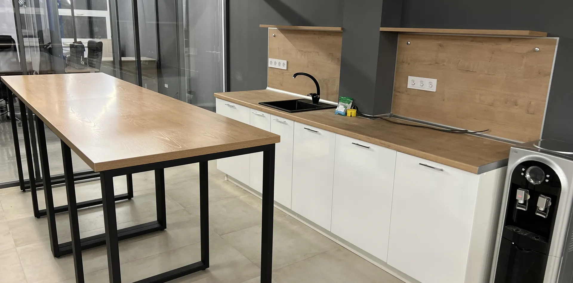 В портфолио собраны проекты офисов различного формата: рабочие зоны сотрудников, кабинеты руководителей, переговорные комнаты, зоны ресепшен, офисные кухни, а также проекты с мебелью на металлокаркасе. Все решения разрабатываются с учётом планировки помещений, требований к эргономике и корпоративного стиля заказчиков, независимо от региона реализации.