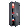 Запорная система построена на трёх направлениях запирания с помощью прочных стальных ригелей. При попытке взлома активируется внутренняя блокировка, предотвращающая открытие. Сейф снабжён надёжным замком KABA MAUER немецкого производства, входящим в комплект с тремя ключами. В основании корпуса предусмотрено отверстие под анкерное крепление, что позволяет жёстко зафиксировать изделие на полу. Также имеется канал в задней панели для подключения охранной сигнализации и устройство, обеспечивающее возможность опечатывания.