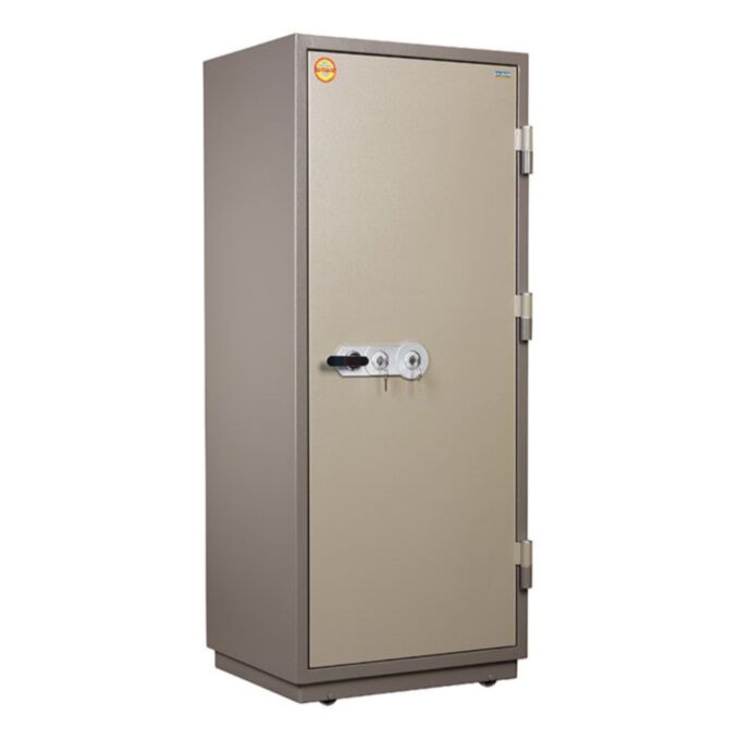 Дверь и стенки корпуса выполнены методом заливки огнеупорного бетона, уникальная формула которого запатентована производителем. Этот материал надёжно изолирует внутренний объём от жара и защищает содержимое от перегрева. В конструкции также предусмотрен тепловой замок, усиленный термостойким уплотнителем, который эффективно блокирует проникновение открытого пламени, горячего воздуха и продуктов горения внутрь сейфового отсека.