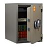 FRS-49.EL оснащается электронным кодовым замком с панелью ввода и дополнительным ключевым замком, что создаёт двухуровневую систему безопасности. После разблокировки дверь открывается поворотной ручкой, обеспечивая удобный доступ к содержимому.