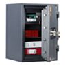 В стандартной комплектации установлен механический ключевой замок KABA MAUER немецкого производства. Для надёжной фиксации предусмотрено анкерное отверстие, а болт для крепления входит в комплект поставки. Сейф подойдёт как для деловых офисов, так и для дома — везде, где требуется прочная, сертифицированная и огнестойкая защита.