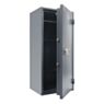 Сейф оснащён трёхсторонним ригельным механизмом, в котором используется удлинённый ход горизонтальных ригелей. Это обеспечивает плотное и устойчивое закрытие двери. В случае физического воздействия на замковую зону активируется автоматическая блокировка ригелей, исключающая возможность открытия даже при частичном разрушении замка. Замковая часть дополнительно защищена от сверления.
