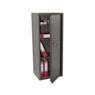 Для обеспечения устойчивости конструкция предусматривает возможность стационарного крепления к стене при помощи монтажного отверстия, расположенного на задней панели, что исключает вероятность смещения. Дверной механизм включает систему запирания с двумя подвижными ригелями, фиксирующими створку сбоку. В комплект входит сертифицированный замок немецкого производства, отличающийся высокой степенью секретности. Внутренние петли исключают возможность взлома и гарантируют дополнительную безопасность содержимого.