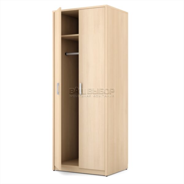 Благодаря размерам 770×580×2000 мм шкаф обеспечивает вместительное внутреннее пространство для размещения документов, папок, архивов или других рабочих принадлежностей, оставаясь при этом компактным и не перегружая интерьер. Конструкция выполнена из ламинированной древесно-стружечной плиты: каркас и верхняя панель — толщиной 22 мм, фасады — 18 мм. Такое сочетание обеспечивает прочность, устойчивость и долговечность изделия даже при активной эксплуатации.