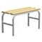 Металлические скамейки часто устанавливаются в раздевалках спортивных залов, школ и других общественных учреждений. Для изготовления каркаса скамеек используется гнутая профильная труба. Это позволяет уменьшить итоговый вес изделия, что значительно облегчает процесс транспортировки и установки. На трубу каркаса посредством напыления наносится высококачественная полимерная краска. Она обладает рядом полезных свойств, в частности, устойчивостью к механическому и химическому воздействию. Непосредственно скамья изготавливается из липы.