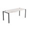 В основе конструкции — прочный П-образный металлокаркас, изготовленный из стального профиля сечением 50×25 мм. Для повышения устойчивости и надёжности конструкции в каркасе предусмотрены усиливающие траверсы 40×20 мм, которые делают стол пригодным к ежедневной активной эксплуатации. Столешница приподнята на 10 мм от металлической базы, что визуально облегчает конструкцию и подчёркивает её современный дизайн.
