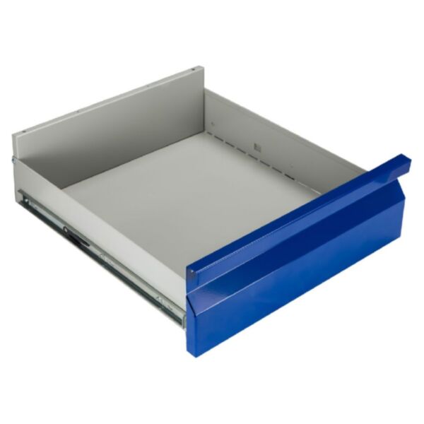 Поверхность корпуса защищена прочным порошковым покрытием в насыщенном синем оттенке RAL 5002, устойчивым к износу и воздействию агрессивной среды. Такое покрытие защищает металл от коррозии, износа и воздействия агрессивной промышленной среды. Цветовое оформление гармонирует с остальными элементами серии, подчёркивая визуальную целостность шкафной системы.