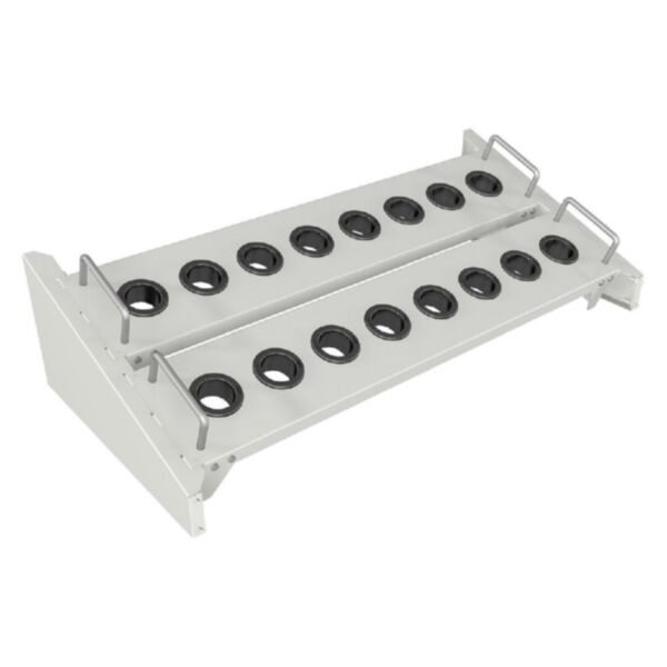 Модель рассчитана на 16 посадочных мест под держатели типа SK 40, которые входят в комплект поставки. Все держатели изготовлены из прочного пластика, устойчивого к деформации, истиранию и вибрациям при ежедневной эксплуатации. Полка комплектуется удобными ручками, облегчающими её установку, перемещение или быструю замену в составе мобильных или стационарных модулей хранения.