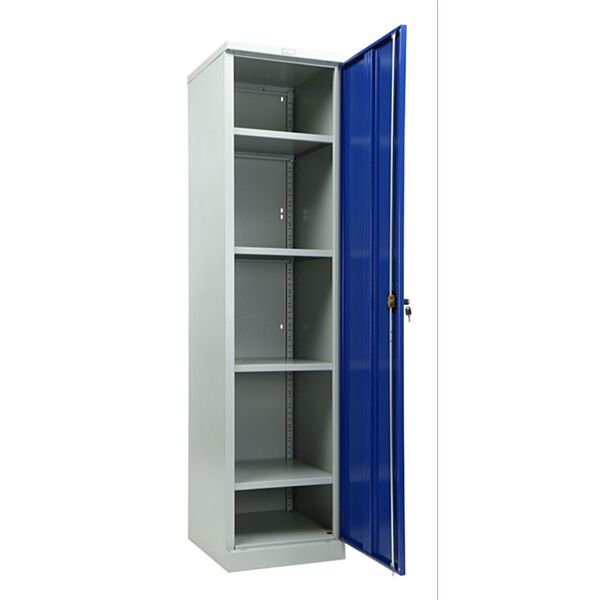 Модель выполнена из листовой стали толщиной 0,8 мм, что обеспечивает жёсткость и устойчивость конструкции к внешним воздействиям. Предельная нагрузка на весь шкаф составляет 200 кг, а каждая полка выдерживает до 80 кг. Конструкция предусматривает регулировку высоты полок с интервалом 50 мм — это позволяет удобно разместить предметы разного размера.