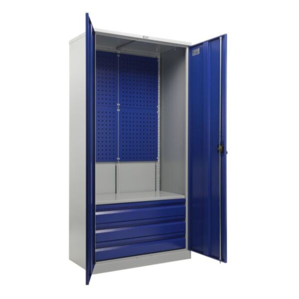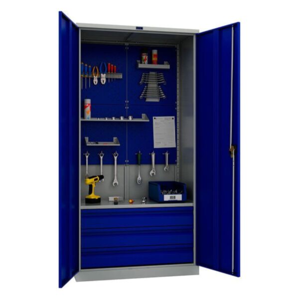 Металлический шкаф TC-1995-041030 предназначен для хранения ручного инструмента, производственной оснастки, запчастей и прочих комплектующих. Эффективен в применении на промышленных предприятиях, в автосервисах и мастерских, где требуется надёжная система хранения с высоким допустимым весом.