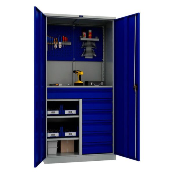 Шкаф TC-1995-121215 предназначен для системного размещения инструмента, технической оснастки и других эксплуатационных материалов в условиях цехов, сервисных зон, станций технического обслуживания и производственных помещений. Его конструкция сочетает в себе прочность, надёжную защиту содержимого и удобную организацию внутреннего пространства.