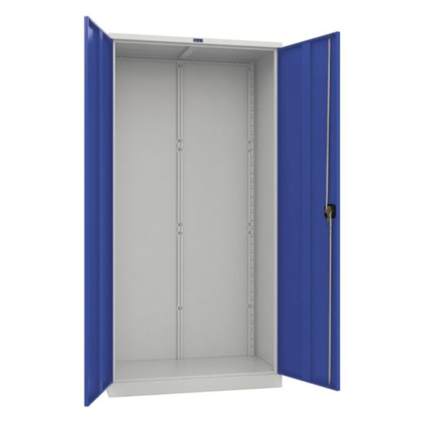 Двери шкафа открываются плавно и бесшумно — благодаря использованию оцинкованных ригелей и износостойких пластиковых втулок. Для безопасного хранения предусмотрен надёжный замок с поворотной ручкой типа Cyberlock, поддерживающий до 2000 уникальных комбинаций. В комплекте поставляются два ключа.