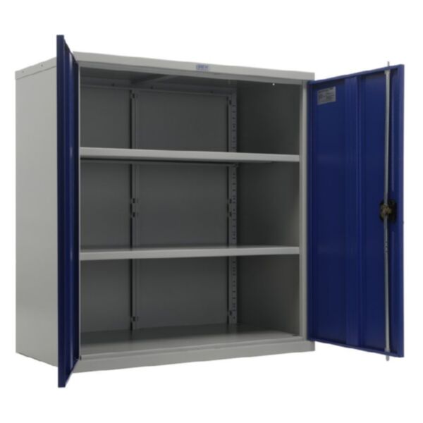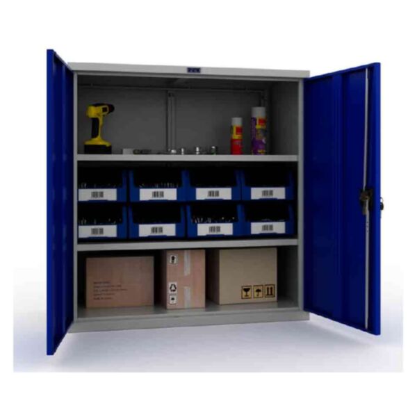 Корпус и дверцы изготовлены из стали толщиной 0,8 мм, благодаря чему изделие выдерживает значительные механические нагрузки и сохраняет форму при интенсивном использовании. Конструкция выдерживает до 500 кг общей нагрузки, при этом каждая полка рассчитана на вес до 80 кг, а ящик — до 30 кг. Уровни установки полок можно менять с шагом 50 мм, адаптируя пространство под габариты инструмента и расходных материалов. Дверцы шкафа открываются плавно и бесшумно благодаря оцинкованным ригелям и втулкам из ударопрочного пластика. Безопасность содержимого обеспечивается ключевым замком с ручкой Burg GSC813 — в комплекте предусмотрены два ключа.