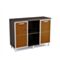 Столешница из ЛДСП толщиной 32 мм обеспечивает высокую прочность и долговечность, выдерживая интенсивное использование. Каркас и полки, изготовленные из ЛДСП толщиной 16 мм, придают конструкции надёжность и устойчивость. Фасады из стекла толщиной 4 мм, обрамлённые алюминиевым профилем, добавляют изделию современный и изысканный вид. Все материалы соответствуют классу эмиссии Е1 от производителя Томлесдрев, что гарантирует их безопасность и экологичность.