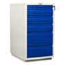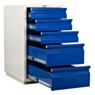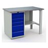 Встроенный блок хранения состоит из пяти вместительных выдвижных ящиков на телескопических направляющих. Каждый ящик способен выдерживать до 30 кг нагрузки. Для защиты содержимого предусмотрен центральный замок, блокирующий все ящики одновременно. Эта модель сочетает в себе практичность, безопасность и высокую прочность, что делает её оптимальным выбором для серьёзных задач.